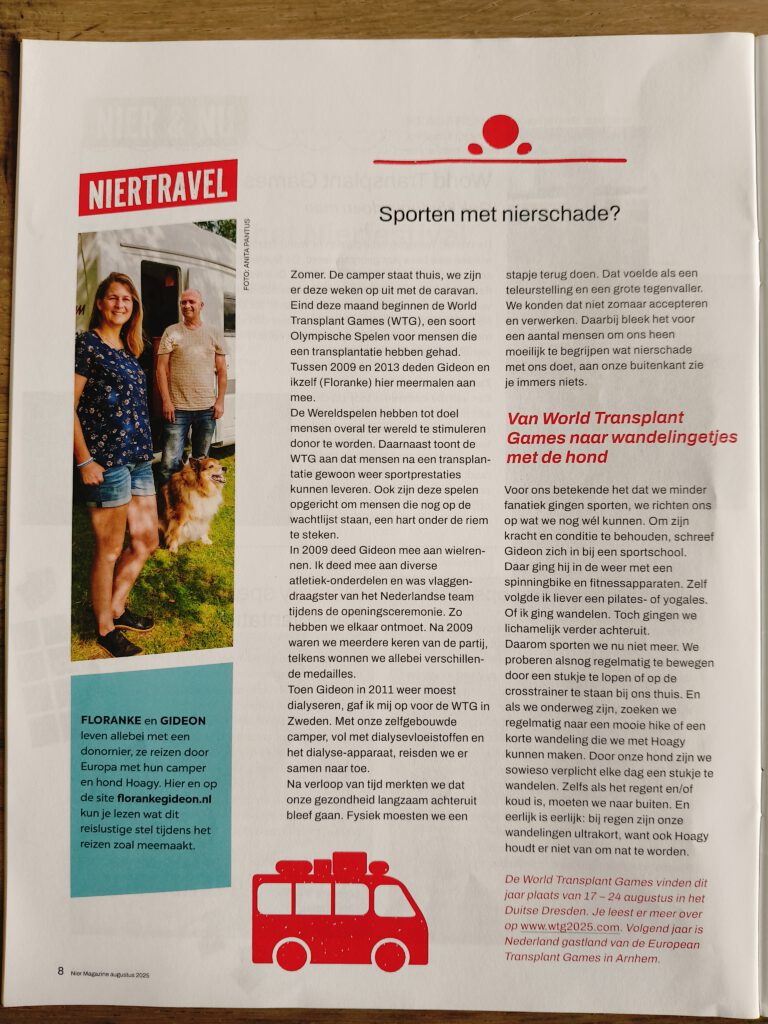 In augustus stonden we voor de 6de keer in het Nier Magazine van de Nierstichting met een eigen column! En dit keer ging onze column over de World Transplant Games en sporten met nierschade.